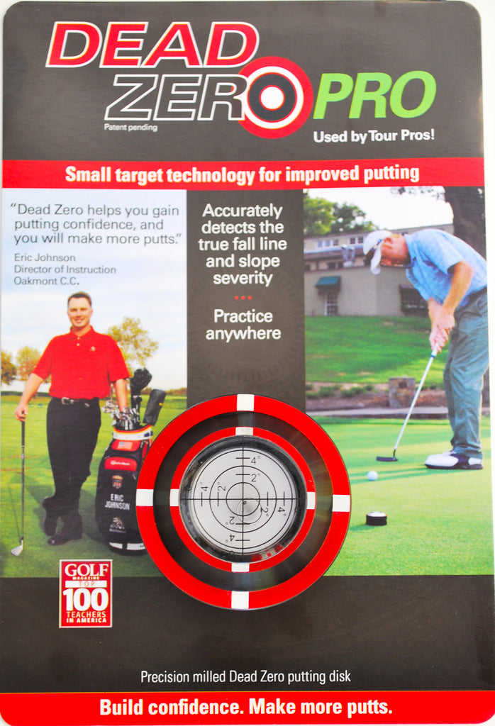 The Dead Zero Putting Pro Disk and the Tin Cup Ball Marker are natural partners. And you'll save $5 by ordering the combo. This package includes the Dead Zero Pro Putting Disk which has a bubble level on top to measure up to 6-degrees of slope, a bulls-eye patterned ball marker and embroidered pouch along with the "Take Aim" Tin Cup Ball Marker, a red Sharpie pen and it's own storage pouch.